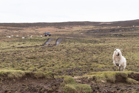 In any case I was hoping to get out there today to see the newborn who was still less than 24 hours old. Alan arrived about 9.30am and Vince and I were ready to go - kitted out in our wet weather gear, and me in my wellies, we set out across our back yard and over the stye behind the Byre. We crossed two fields of deep boggy ground that had be turned over by the cattle and sheep into a quagmire and we had to use our hiking poles to both check depth as well as keep us steady from slipping. We were in squelchy muck up to our knees in many places.