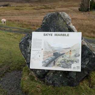 After the turn off at Broadford we drove along the road to Torrin and Elgol and stopped off opposite to the Old Church and Graveyard, Cill Chriosd, to have a look and take some photos and directly opposite where some stones with information about