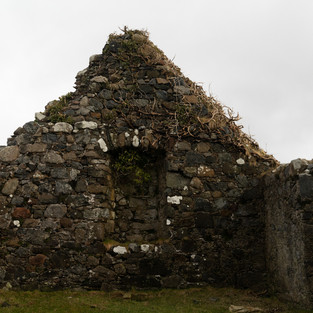 Cill Chroisd (Chris’ Church) is a ruined former Parish church for Strath, and the cleared villages of Boreraig and Susinish, constructed in the 16th Century to replace a medieval stone church on that location. It was used until 1840 when the the parish was relocated to Broadford. The ruins lie at the top of a small mound, surrounded by the graveyard. It is said to have roughly dressed quoins and jambs, and a balustraded brutal enclosure at the East gable in the early 18th Century for the MacKinnons (in 1627 the first Protestant minister was Neil Mackinnon). The church doorway on the south wall has splayed jambs and check and square sconsion. The three winds along this wall have check and inward splay, similar to the window in the East Gable, which is now built up.